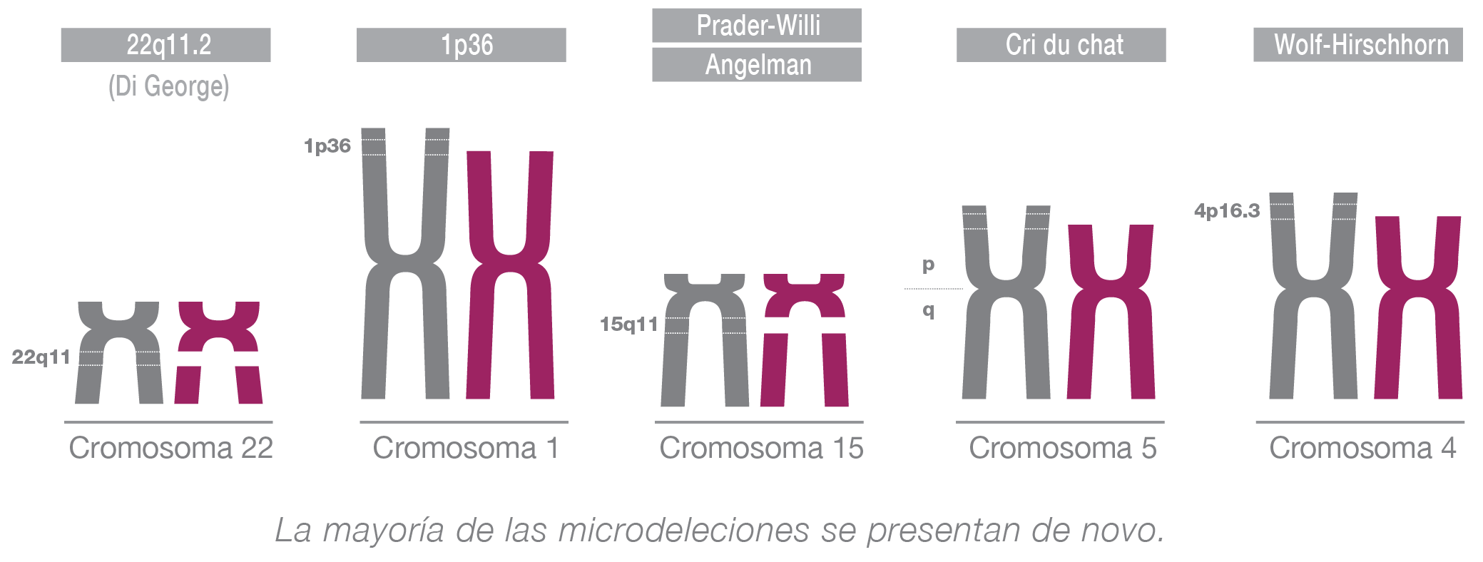 El panel de estudio ampliado a microdeleciones permite detectar 6 síndromes clínicos de importancia provenientes de microdeleciones: Sindrome 22q11.2 /Di George, Sindrome 1p36, Sindrome Prader-Willi/Angelman, Sindrome Cri du chat y Sindrome Wolf-Hirschhorn.